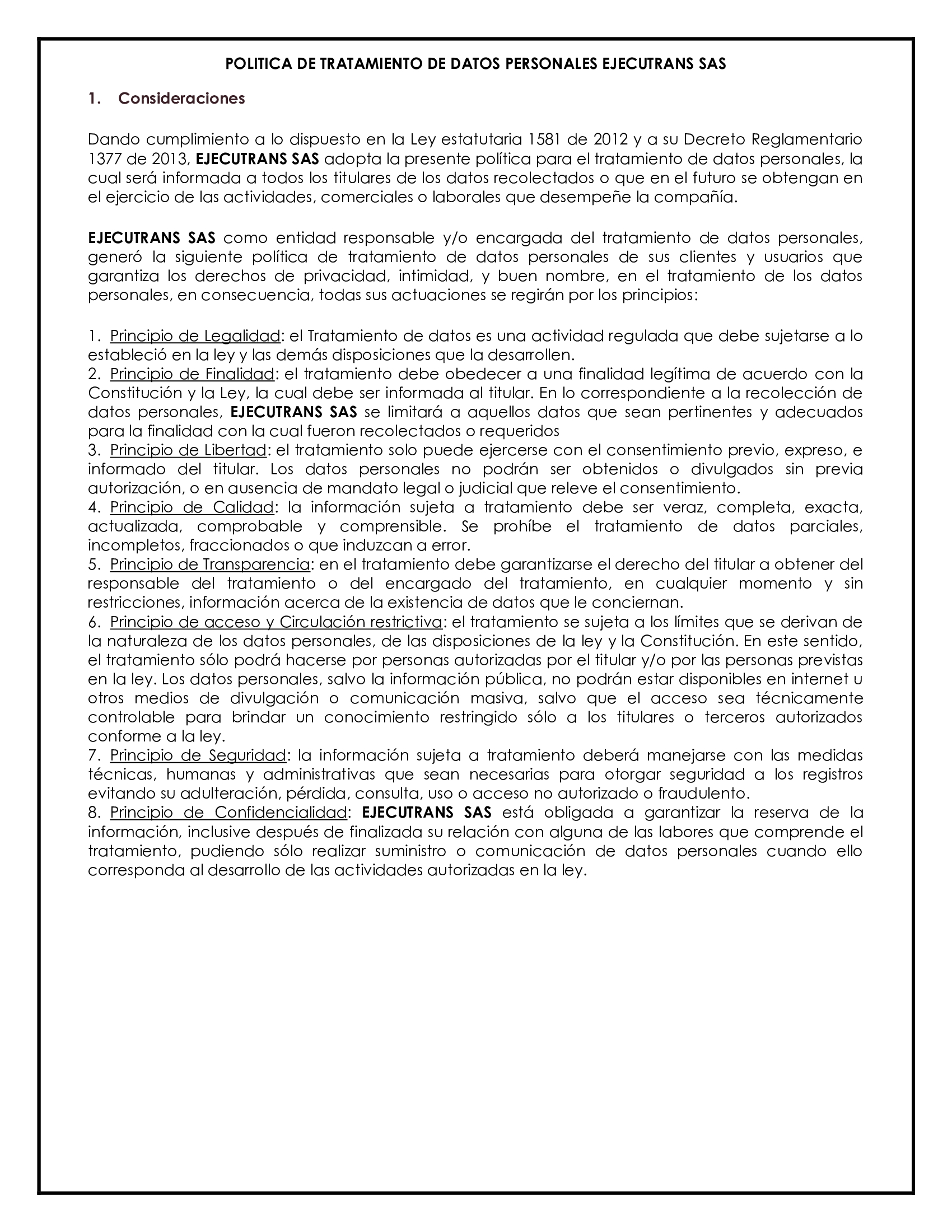 EJECUTRANS SAS, es una empresa de transporte terrestre automotor especial de pasajeros, comprometida con la implementación del sistema de gestión de la seguridad y salud en el trabajo, la satisfacción de sus clientes, y el medio ambiente en todas sus operaciones.